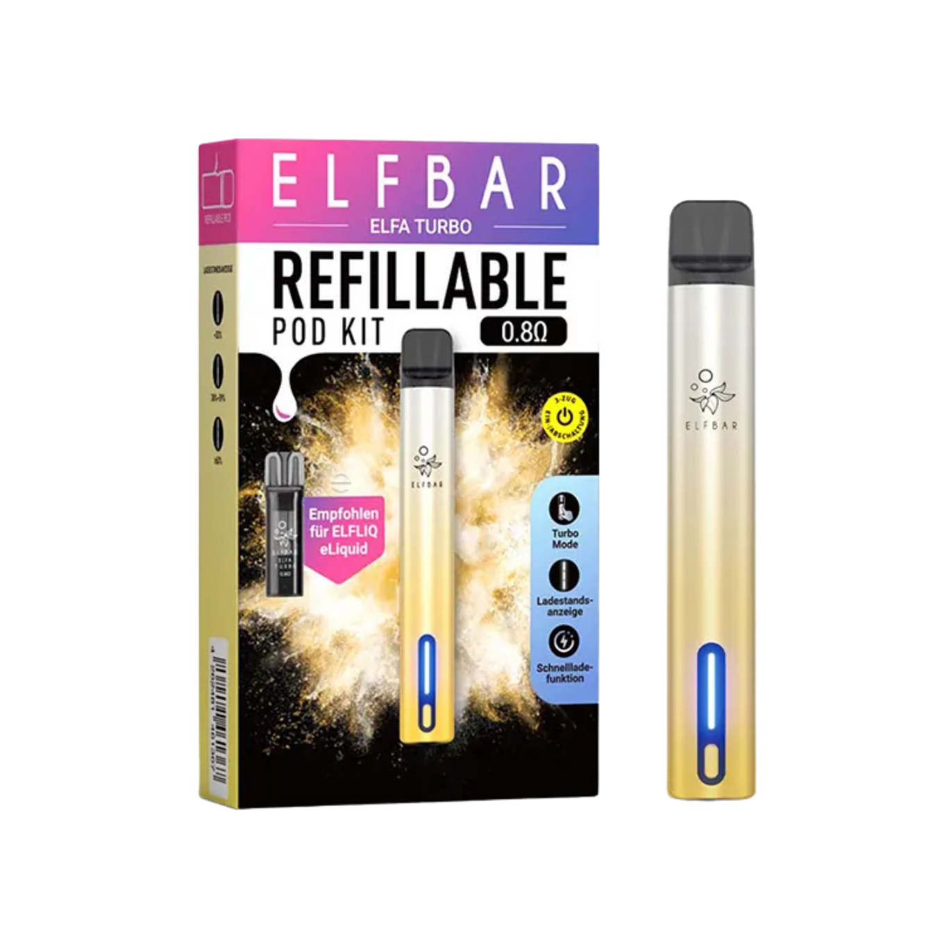 Die Elfbar ELFA Turbo E-Zigarette kombiniert Benutzerfreundlichkeit mit fortschrittlicher Technologie und einem stylischen Design. Egal ob du nach flexiblen Leistungsoptionen oder schneller Ladezeit suchst – dieses Pod-System bietet dir beides. Erlebe ein individuelles Dampferlebnis mit der Elfbar ELFA Turbo und genieße die Vorteile eines leistungsstarken und zugleich nachhaltigen Geräts.