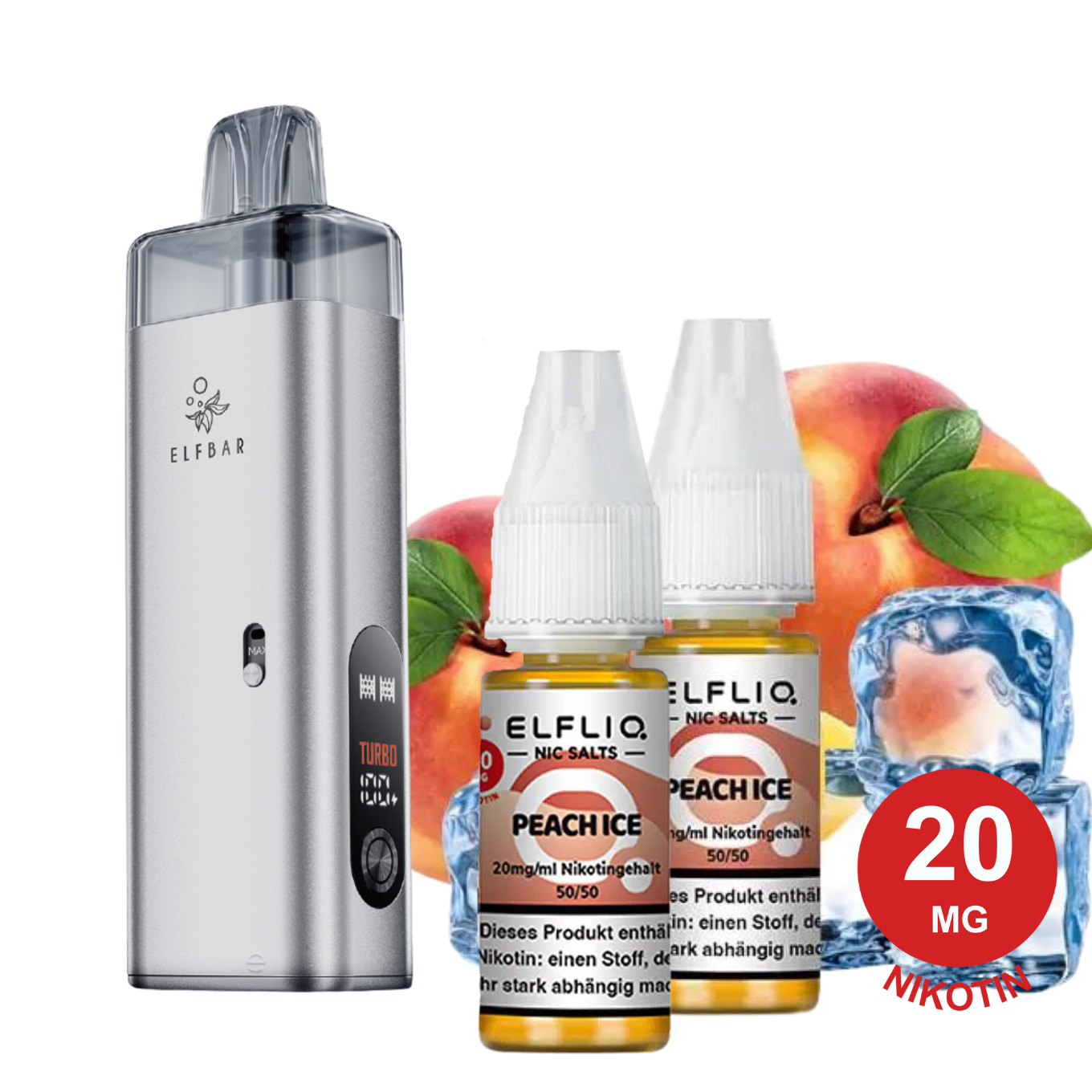 ELFBAR ELFX MEGA Kit – Silver mit Peach Ice (Komplett-Set)