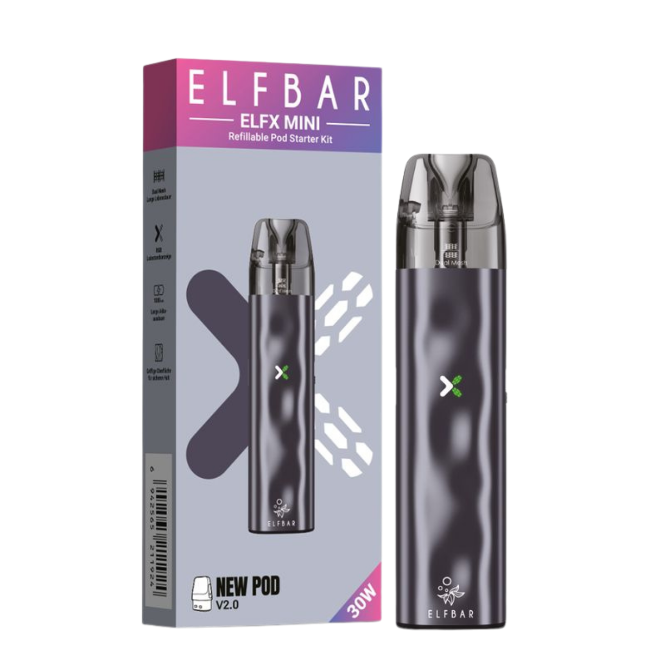 Das Kit gehört zur erfolgreichen ELFBAR ELFX Serie und nutzt die gleichen Pods wie Modelle der Serie, darunter auch der ELFX Pro. Dadurch bleibt das System flexibel und kompatibel mit verschiedenen Pod-Varianten. Besonders praktisch für Nutzer, die bereits Geräte der Serie verwenden.