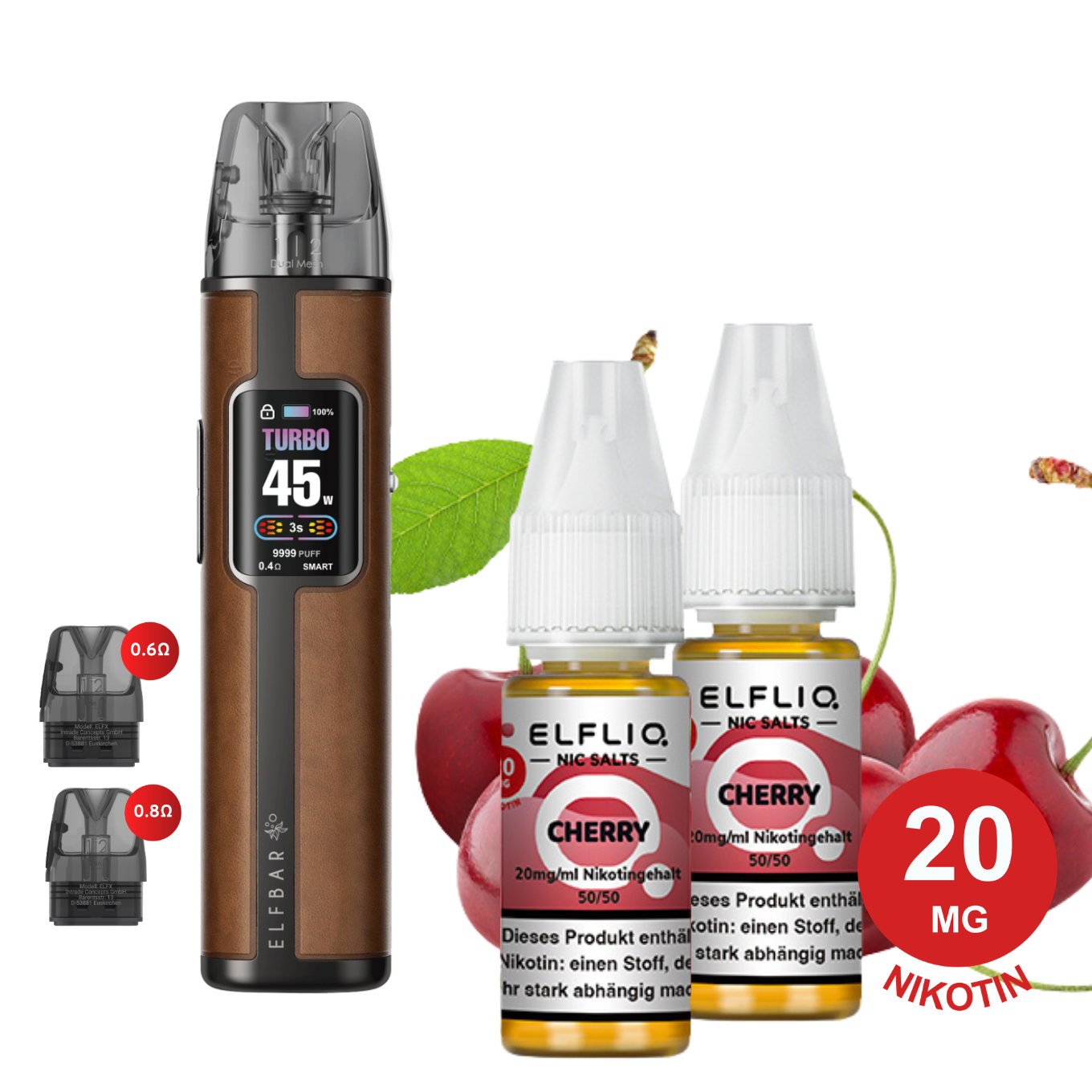 - 🔥 Enthaltenes Nikotinsalz: 2x Elfliq Cherry (je 10 ml)