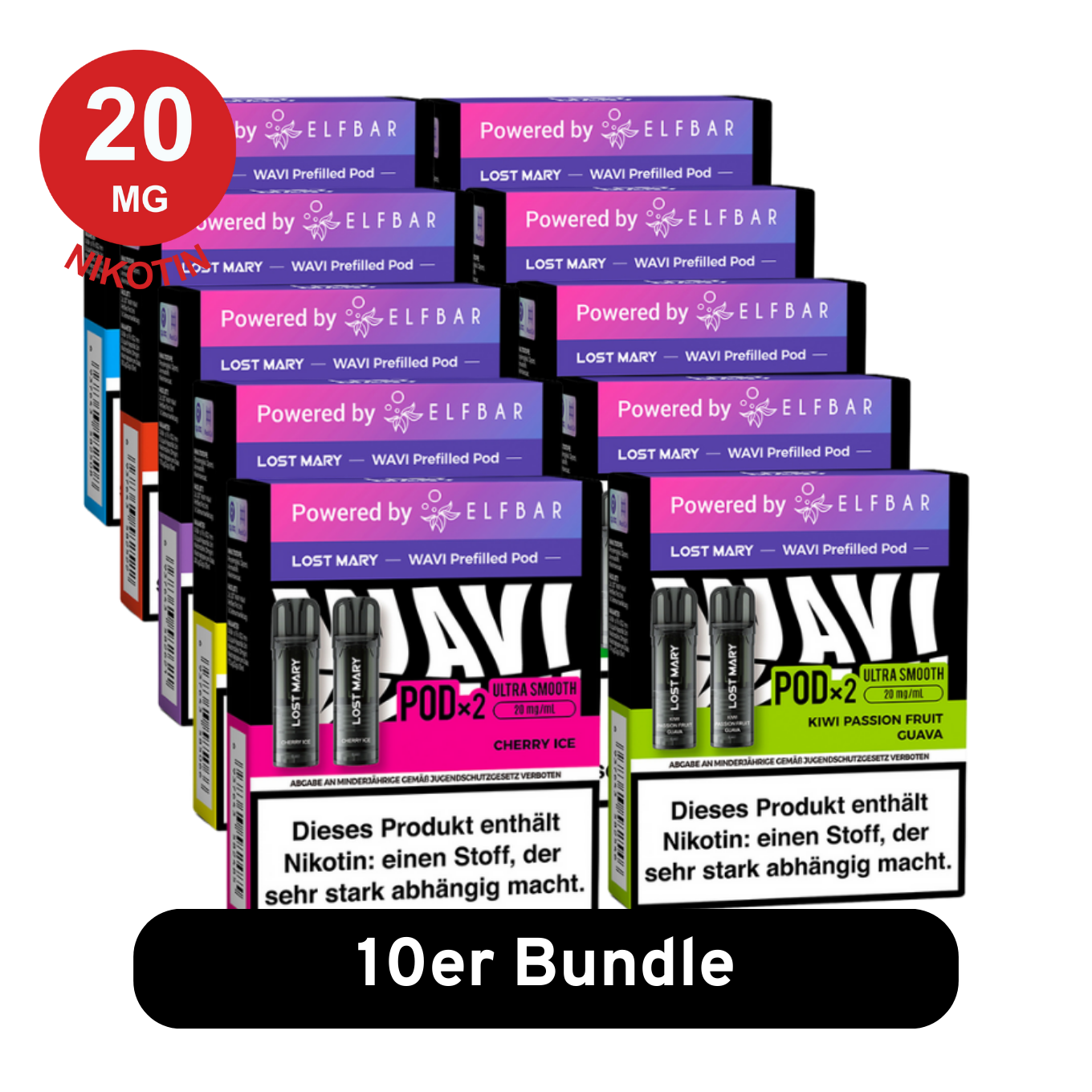 Die Lost Mary WAVI Pods im frei wählbaren 10er Mix Bundle mit Nikotin. Du wählst aus unseren Lost Mary WAVI Geschmacksrichtungen und stellst dir deine persönliche Kombination selbst zusammen.